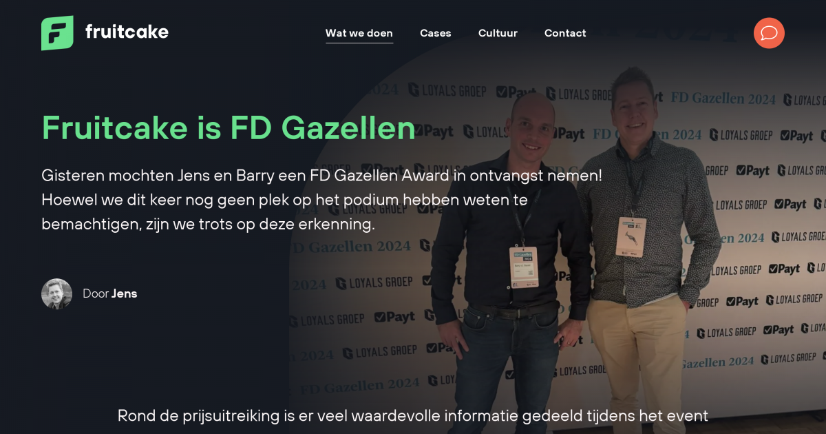 Gisteren mochten Jens en Barry een FD Gazellen Award in ontvangst nemen! Hoewel we dit keer nog geen plek op het podium hebben weten te bemachtigen, zijn we trots op deze erkenning.