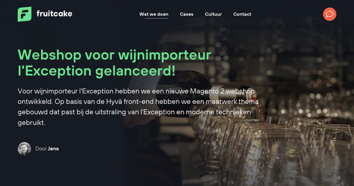 Voor wijnimporteur l'Exception hebben we een nieuwe Magento 2 webshop ontwikkeld. Op basis van de Hyvä front-end hebben we een maatwerk thema gebouwd dat past bij de uitstraling van l'Exception en moderne technieken gebruikt.