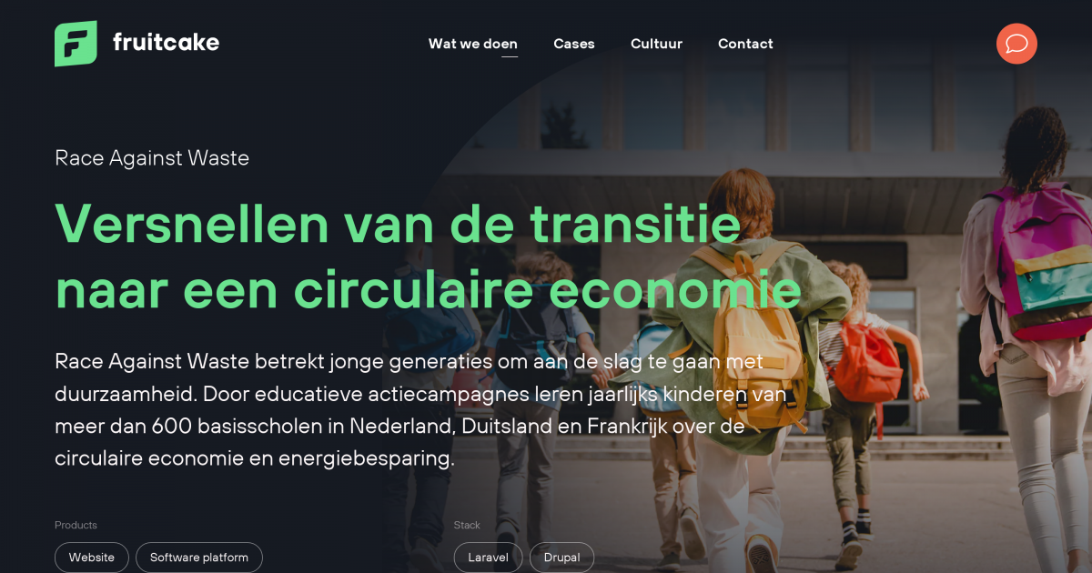 We werken al meer dan 10 jaar samen met Fruitcake sinds het begin van onze beiden bedrijven en we zijn nog steeds erg blij met de geleverde support. Onze Race-websites hebben erg veel technische functionaliteiten waarbij punten toegekend worden voor circulaire acties en waarbij ophaalmomenten tussen scholen en buurtbewoners worden geregeld. We hebben continue wensen op ons lijstje en ons systeem wordt continue uitgebreid. Ook hebben we ons systeem inmiddels in 7 landen draaien. Voor deze continue ontwikkeling is het van belang een fijne partner te hebben waarmee snel geschakeld kan worden. Die partner hebben we in Fruitcake gevonden.