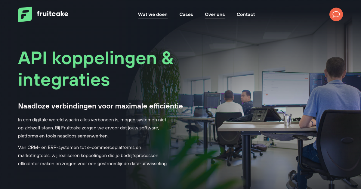 In een digitale wereld waarin alles verbonden is, mogen systemen niet op zichzelf staan. Bij Fruitcake zorgen we ervoor dat jouw software, platforms en tools naadloos samenwerken.