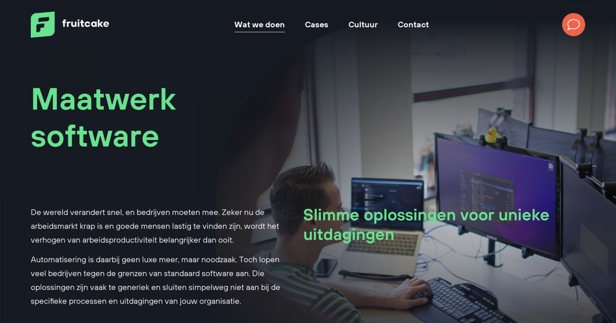 Fruitcake helpt je van idee tot realisatie. Wij bouwen digitale oplossingen die niet alleen passen bij vandaag, maar klaar zijn voor morgen.